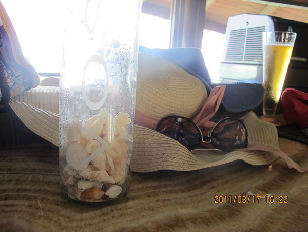 我们捡的贝壳,本来想带回国,但是岛上人说不可以的~会破换生态~ 其实我想说的是这个玻璃瓶,它是酒店的矿泉水瓶子,喝完了没舍得扔!