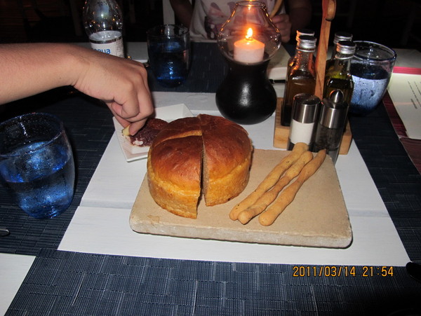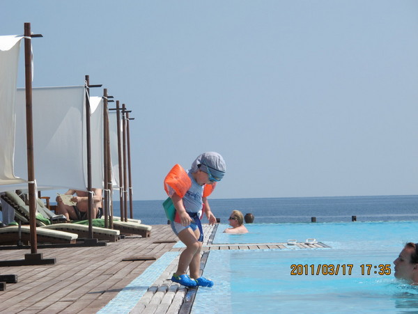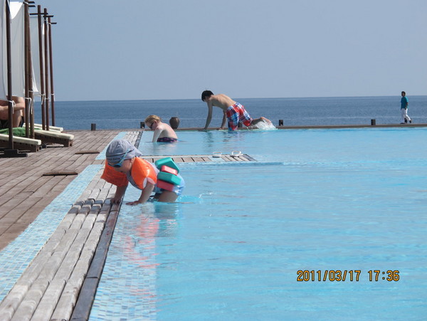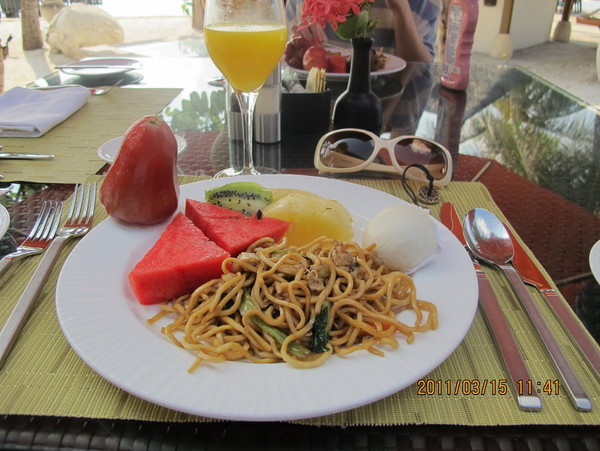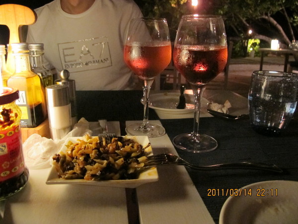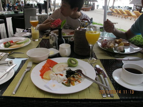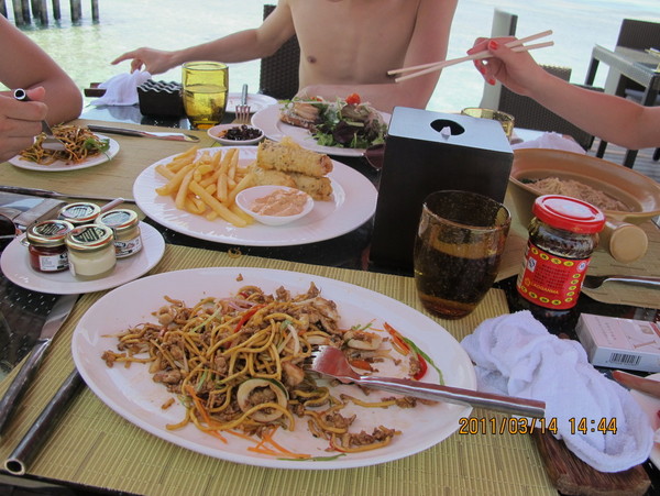我们定的房间是不含午餐的,岛上的餐厅很多,我们选择在无边泳池旁用餐