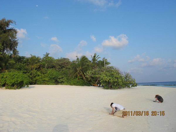 马尔代夫所有岛的沙都是白色的,据说是死去的珊瑚冲上海滩行程的~