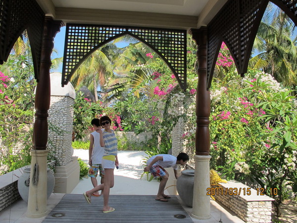 我们拿着旅游公司给我们的酒店预订单到了四季岛的接待台