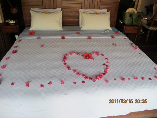 我们在岛上遇见了小两口是苏州人,他们定的是蜜月套房: 酒店还用鲜花布置了一下~