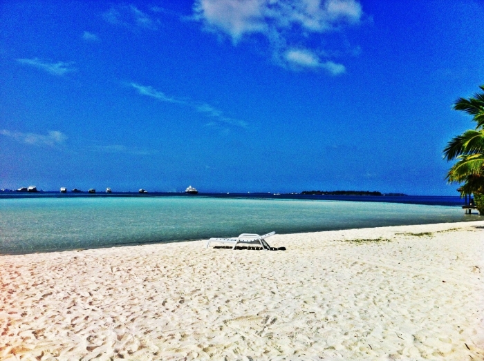 在马勒工作的两天,午、晚餐,都在这个海边的自助餐厅解决的。风景不错,海风清清的吹,并没有我们想象的那么热。