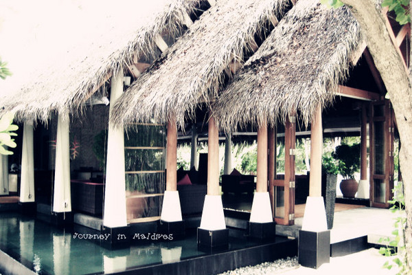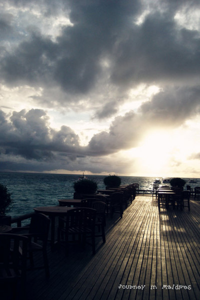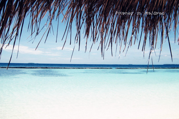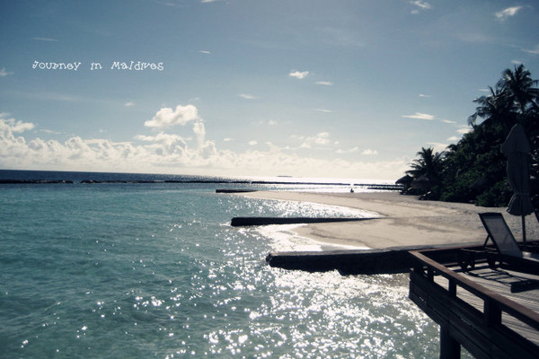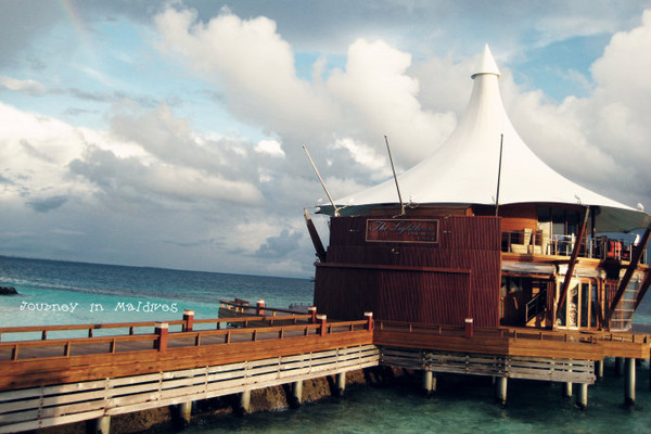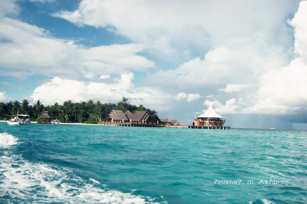 出了水上屋,向岛内走,有数个餐厅、Reception、图书馆还有商店。早餐是在露天餐厅用的,也是依海而建,这里的水果随意取用,超好吃的。托着腮,望着蓝天碧海,感慨时间真的就此打住该有多好。给爸妈打了电话,描述看到的美景。又跑去商店,买了明信片寄给了爸妈、奶奶和外公。然后就是预约接下来几天的活动,约了Spa馆,出海两次。