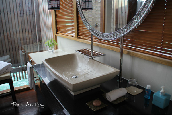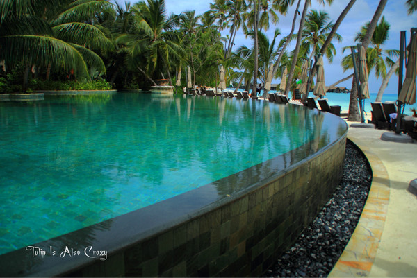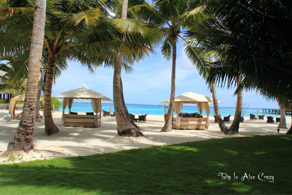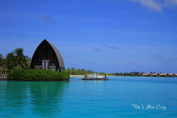 于是赶忙搜攻略,跑旅行社。旅行社介绍了天堂岛、满月岛、狄娃岛、椰子岛、瓦度岛……哎,由于是要近期出去,1个月内都没什么适合自己的日子了。就在这时一个熟悉的名字从我眼前闪过——香格里拉。 一了解,套餐内容包括:4晚水屋、BB、蜜月香槟水果、蜜月花床布置、蜜月泡泡浴、内陆飞机+快艇上岛(离马累远,水质相对较好)。另外香格里拉薇宁姬莉岛浮潜条件不错,是一座六星级的度假岛屿,绵延6公里的海岸线和2公里的白色沙滩(够大,够爽,太小的不喜欢^_^),水屋也比较大,160多个平方2个人住~关键的关键,岛上很多会中文的服务员(听说香格里拉的高层,每个部门都有会中文的),有的餐厅菜单也有中文的,所以对我这种英语不太好的人来说,简直就是福音~最后的最后,这个岛在南半球,过了赤道,好歹乘这个机会,去次地球的另外半边~~~~