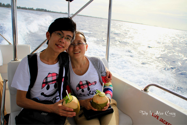 在日光的护送下,快艇疾驰向香岛,小黑主动帮我们拍照,并且送上了新鲜的椰子