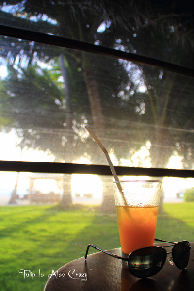 等待回程时,送的芒果汁(个人认为岛上最好喝的饮料,很浓很纯,所以最后的几次用餐,都是叫的Mango juice,极力推荐哦):