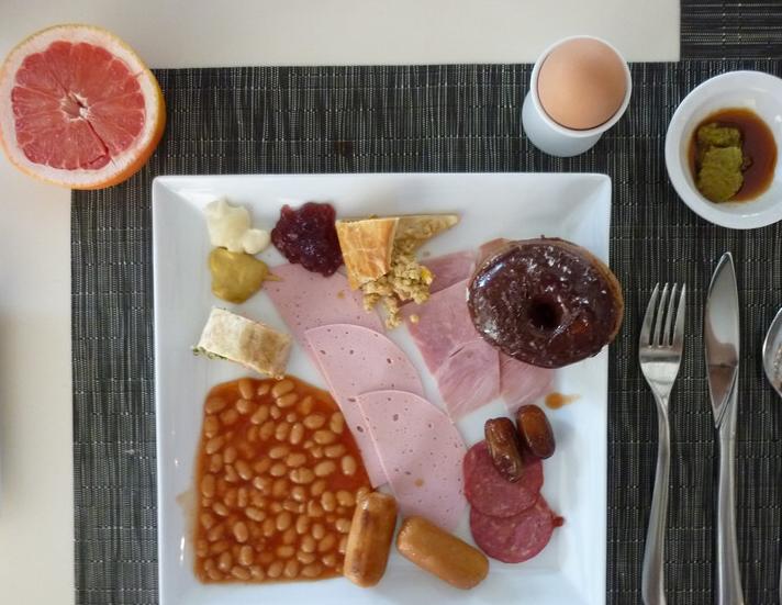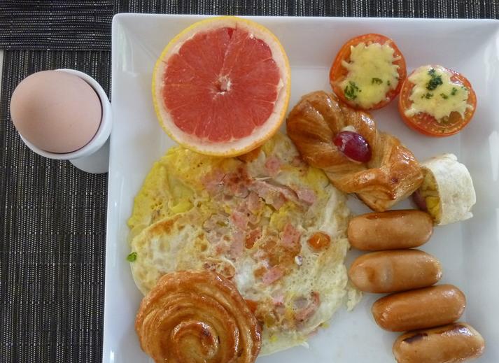 看到一些帖子写“中国胃一定自备方便面”觉得有些太夸张了也太不切合实际了,也许是各个岛不同吧。薇拉莎露这里我们的FB每餐都有很“通用口味”的食材,比如蛋糕面包牛奶等等。只是这里的蜂蜜、奶油、巧克力都很纯很甜,吃多了可能会觉得腻。早点的煎鸡蛋他会问你煎单面还是双面,最好让他煎双面而且多煎一会儿,因为老外吃蛋大多单面而且是糖心的,他这里也一样。我还好,老婆就不太喜欢吃糖心的鸡蛋,好在他那里也提供只有蛋清的煎蛋,呵呵,准备的很全很周到。牛奶也从全脂奶到脱脂奶分为了三种,总能找到自己喜欢的,完全不用担心“吃不惯”。有一些可选的菜单如果吃不惯海味也可以不要大虾跟鱿鱼,而选用鸡肉或者汉堡之类的,有些餐还有冰激凌做餐后甜点,总之我不觉得这样的条件真的会有人的胃口接受不了。我们带去的零食因为三餐都吃得很饱,很多都剩下送给小黑了。如果上天再给我一次选择的机会我一定会选择HB或BB!