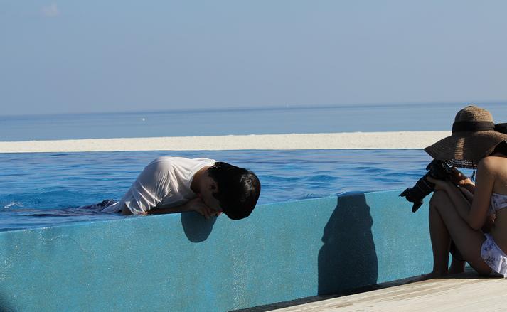 相信很多国内的朋友都不喜欢去人很多的地方,特别是不喜欢在境外游玩儿时候遇到身边国人很多的情况。这次薇拉莎露之行,我印象中中国的情侣不超过5对,而且彼此之间都没什么交流。我跟老婆是那种纯希望度过二人世界的蜜月需求,所以即使有机会跟大陆的夫妻搭讪也都让去了,主要是怕搭上话以后在哪里遇到,一起走有些电灯泡,不说话又比较尴尬,大家懂的。跟花花聊天知道岛上大概只住了100对左右,而且绝大多数都是韩国人。这一点眼睛已经帮我们证实了,除了4、5对中国情侣,其他的黑头发基本上都是韩国人(因为我懂日语,所以留意过,没有遇到任何日本夫妇,都是韩国的),而且韩国人都很好认,大致可以分为两种:整容前的,跟整容后的。整容前的都是眼镜小小的鼻梁瘪瘪的,整容后的都是眼睛大大的鼻梁高高的。^_^开个玩笑,不过不管是不是人造,韩国美女们的身材都不错,老婆都忍不住用我的长焦偷拍了几张。如果在岛上走路遇到其他游客,如果是亚洲人大多会很礼貌的“假装没看到”不露破绽的错身过去;而金发碧眼的欧洲人都会在走到身前时候跟你点头或者简单问候一句,这一点相信不管什么地方都差不多。总体上无论是哪个国家的游客,都十分守规矩,岛上一片和谐景象。可以说:在甜美的二人世界之余,偶遇到陌生人的时候也都是比较愉快的经历。