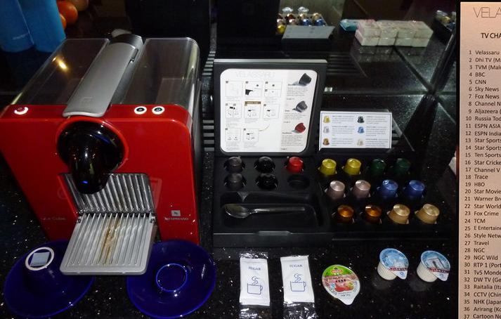 回来休息休息泡两杯咖啡(免费的哦),一边看电视一边喝,可选的台还挺多呢