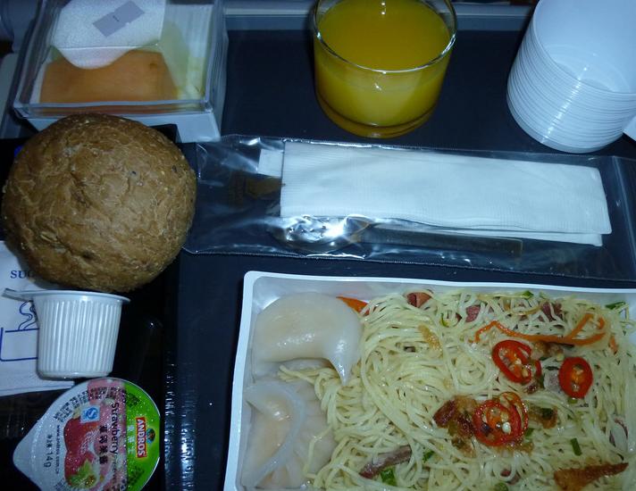 新航飞机上总是有各种菜单,不同的航线,一日三餐的选择似乎也略有不同,起码比东方航空提供的实物要好一些