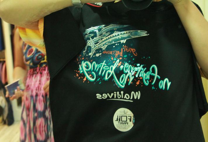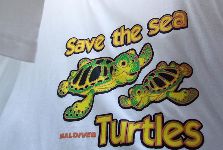 这件是我最后购买的马尔代夫纪念T恤,彩色反光的鱼类图案很漂亮。不过很贵:40美金……只是真的很喜欢,咬咬牙吧