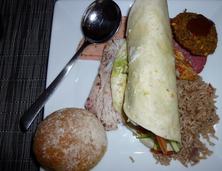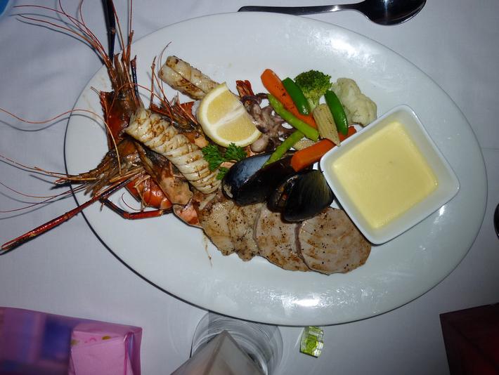 我们因为第一次去,怕吃饭时候语言有问题就定了FB三餐,实践证明这是很不明智的。因为每次吃饭都会悠哉悠哉的吃上一个多小时,一顿午餐完全把早餐到晚餐之间的自由活动时间剪切成了两个3、4小时候的段落,加上往返房间换衣服跟来往餐厅的时间,真正玩儿的安排很是紧张。如果只要早餐,或者只要早晚餐的话,肯定会自由很多。可以自己带一些吃的东西应付中午,晒太阳或者浮潜休息时候随便吃一些饼干之类的东西当做午餐,这样基本上中午不会觉得饿,早晚多吃一些就行了,哈哈。或者只定早餐晚上可以有机会去其他的几个风味餐厅尝试下日式,地中海式等口味,如果把HB与BB之间的差价都合算回来,实际上自己去餐厅点菜也不会贵很多,只是你的英文一定要好,不然会有些麻烦。还有哦,早餐有时候会问你要“coffee or tea”这个是免费的,呵呵。我们怀着花钱也要享受一下的“觉悟”各点了一份,结果前台询问了一下是免费的。