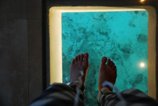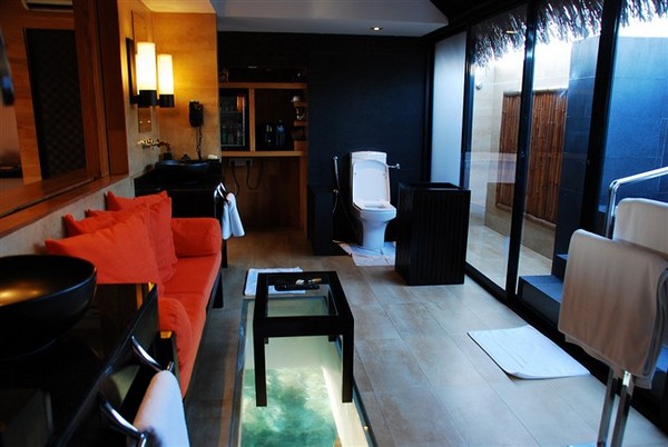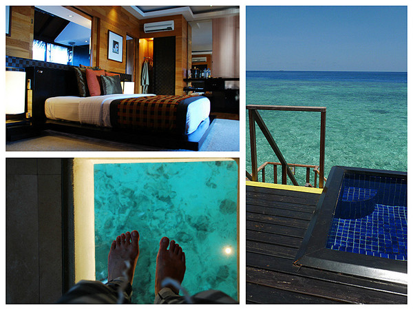 房间简洁大气,设施得体就手。比较有特点的洗手间可以看海水的玻璃地板虽然没有大用,但就像蛋糕上那颗红樱桃,意不在味在点缀。