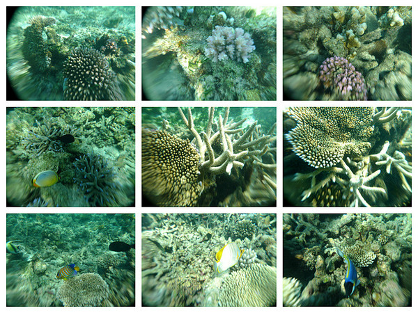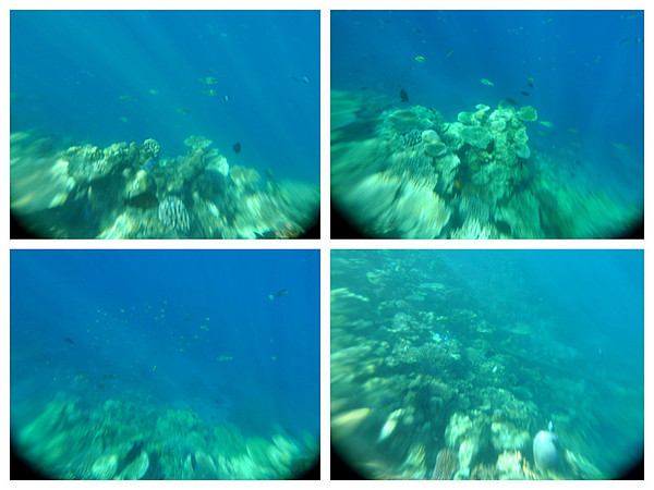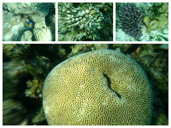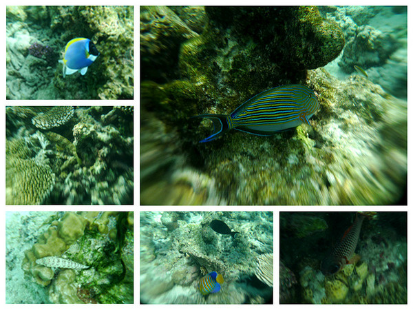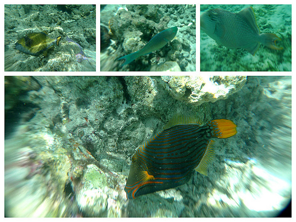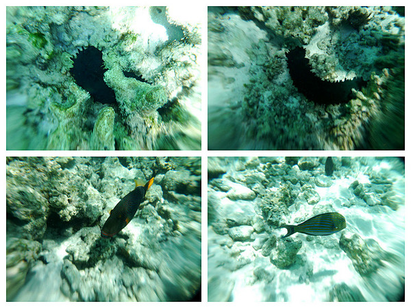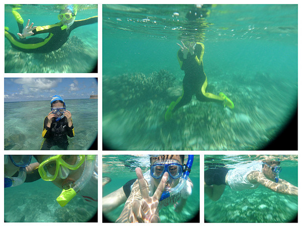 浮潜开始了!从露台楼梯下去就是浮潜区,一直到浅蓝变深蓝的那条海沟边缘,都是安全的浮潜区,我第一次像鱼儿一样看这个海底的世界,像刚出生一般;我第一次像鱼儿一样与鱼群一同游弋,像天生会游一般。跟随我的镜头探寻这神秘新世界吧(遗憾的是对浮潜的预期不够,我只网购了不专业的防水相机套,由于水里光的折射,镜头都有些变形)