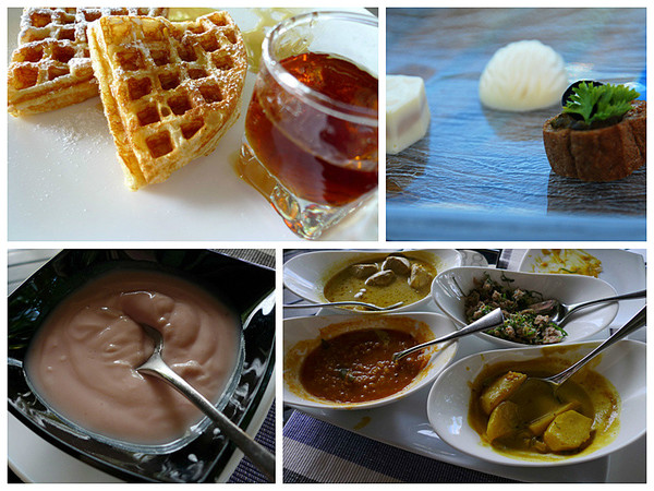 早餐推荐迷你牛排和华夫饼,牛角面包也不错,华夫饼是我在那吃到的最美味的食物,第一天由于太饿,华夫饼吃到只剩一半才想起拍照好推荐给吃货们,放下半块饼,拿起相机,举起相机,从取景框中找饼对焦,饼子不见了!视线转到旁边的吃货,嘴里正嚼着饼,满脸无辜:我以为你吃不下了,我抓狂了:我喜欢吃!谁让你吃的!我还没拍呢!!美食当前,谁的修养都好不到哪去。所以第一天的半块华夫饼就如此牺牲了,但没有发生半块华夫饼引起的血案。不知道是否心理作祟,虽然后几天一直在吃华夫饼,始终觉得不如第一天的好吃。另外一样好吃的就是Rifsha每天会给我们送来的非常精致的小点心和巧克力,感觉是法式点心,用一小丁面包搭配一些香叶和腌制的果脯瓜脯之类,口感很别致。