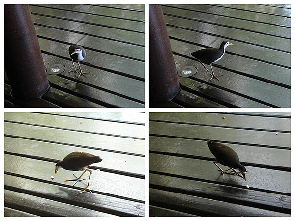 早餐时间到,大狗自然也起床了。早餐值得一提的是在走廊那排餐桌附近有一只小黑鸟,专在这地盘混吃混喝,捡客人掉下的菜渣,每早定点出现,我叫他小贼鸟。