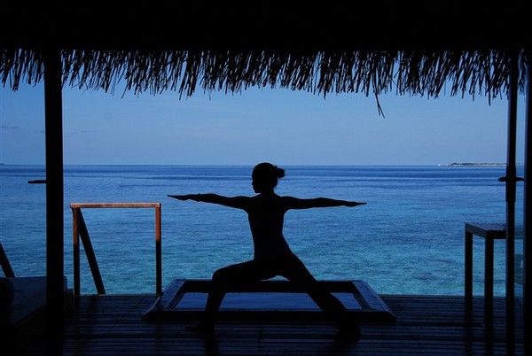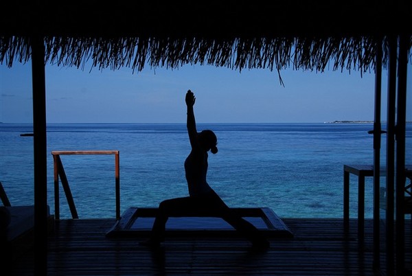 估计7点半我醒来,开始效仿老前辈蕙兰,记得儿时看到电视里这个不漂亮的阿姨总是擦着红嘴唇带着花环在海边悬崖做各种奇怪动作,只觉得,花环好漂亮,海浪声好听。此时,我面朝大海,收拾一颗浮世之心,在瑜伽动作中寻找宁静和平衡。