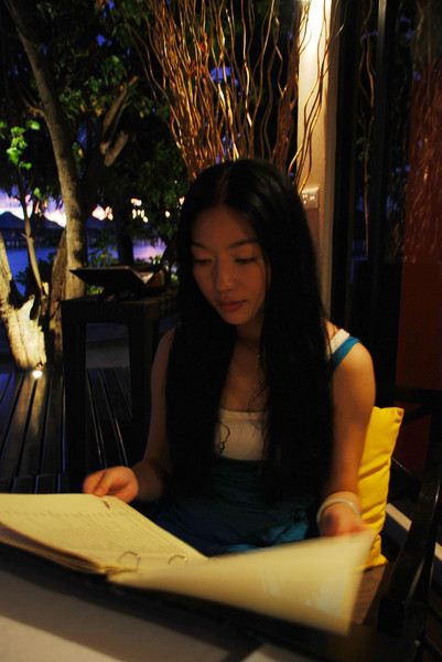 然后,在第一天的黄昏降临时,听着我iphone里仅收录的四首歌“玫瑰人生、Beauty and the beast、自然小径、Lucky”,在露台的椅子上翘高双脚面对大海思考人生,好吧,其实是放空,真正的放空……这时夜色渐浓渐浓……