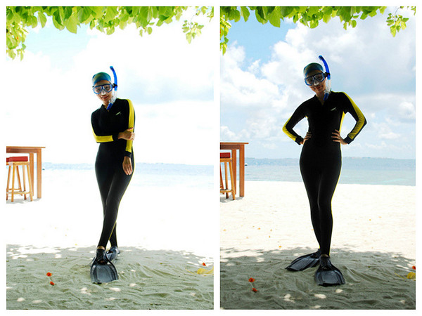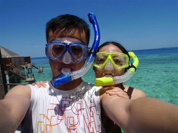 马尔代夫三件事:晒太阳、发呆、浮潜;对于国人来说变成另三件:打伞、拍照、浮潜;岛上国人很好认:女的大多花枝招展披挂打伞在前面凹造型,男的在后面单反跟拍。我真的很难理解:那么怕晒来马尔代夫不是自找罪受?而欧美的一般素色运动装束为主,夫妻情侣不管年龄基本都牵手徐行,有一对老夫妇牵手还只牵一个指头,几乎没见到一个边走边拍的。