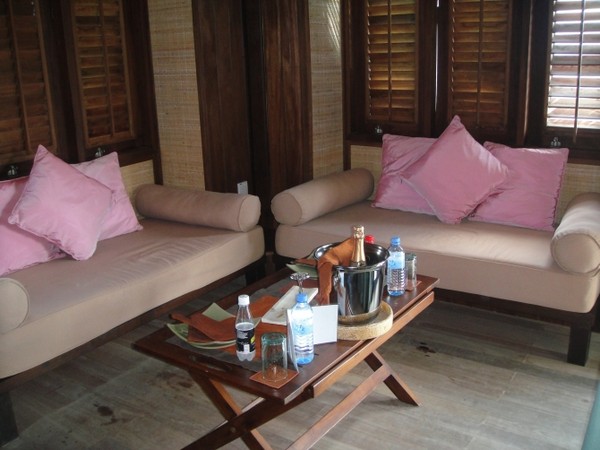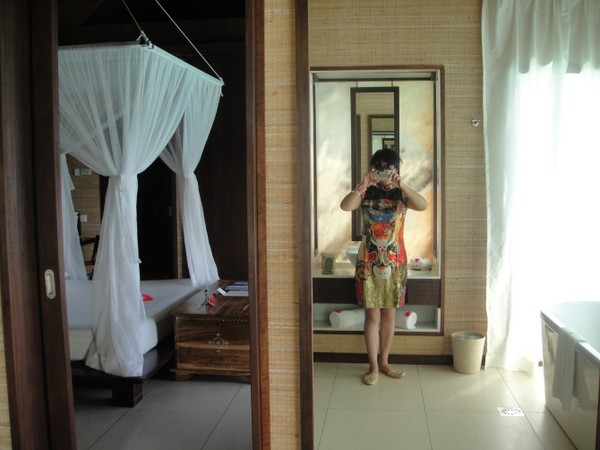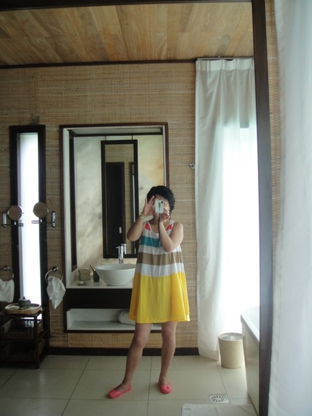 哈哈!上回说到,我预订的是(两天高级房+两天水上屋),我前面也有介绍我所住的高级房。哈哈!我说我中奖啦!秘密就在此。我入住的第一天其实入住的是沙滩屋,而不是高级房。虽然这是退房前的时刻,也要改口称为沙滩屋才对!哈哈!房型不同,价格有别呀!