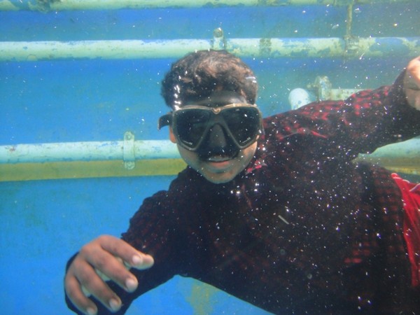 哈哈!仔细观察呀!试潜水的海底没有岸边海底那样细滑,不穿游泳鞋很难立足。乘船十几分钟后GO带领大家先在浅海式游,适应自己佩戴的潜水镜、呼吸管,穿上脚蹼后如何游动。十几分钟后大家上游艇驶入深海的浮潜点,真正体验人鱼自然和谐相处的感觉。哈哈!不要担心自己的游泳技术,只要你能在水里游几下就可以畅游海底世界啦。这里的海水浮力比较大,身边有GO陪同下海浮潜,哈哈!陪同我们的是韩国帅哥。但是完全不会游泳的就不要下水啦,在船上照相也是不错滴。哈哈!