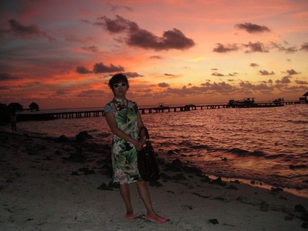 马尔代夫.卡尼岛的第四天——》四点多早早起床拍日出,哈哈!美吧!