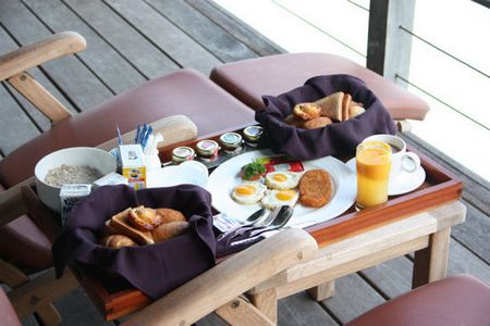 7:00整,早餐的时间到啦。准备出海浮潜的人们陆陆续续的来到餐厅进餐。哈哈!我一定要多吃点,免得没有力气游泳和海底拍照。带上潜水装备,和穿了防水衣的照相机,我身后就是出海乘坐的快艇码头和快艇。带上潜水镜、呼吸管、游泳鞋、脚蹼、防晒霜、矿泉水,如果担心游泳会饿的话,自备零食也可以给海底深处的鱼儿吃。