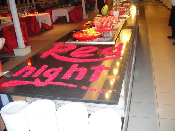 19:20时分,晚餐开始。不用我介绍吧!大家可以看出今晚是红色的主题,哈哈!不要以为这是什么人举行中国婚礼