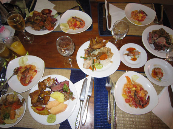 美食、美酒、美环境、美女加帅哥,哈哈!不知是胃口超好还是浮潜玩的太疯狂啦,吃了很多美食。