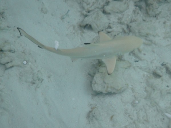 我这面是靠礁石的一面,换位后我一看,我赛!深不见底呀!万一搁浅啦,叫上帝也是玩完!哈哈!管他滴!我滴俗语:宁在马代死,做鬼也是仙!我滴个天呀~~大鱼又来啦!