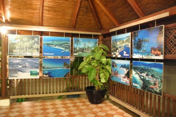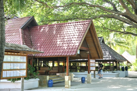 主餐厅的对面就是度假村的前台。我所住的沙滩房和水上屋在前台的南面,这里一步一美景,寸步难行的感觉。即使你照相技术极差,也一样拍照出精品大作,感受艺术家的自豪。前台旁边的卡尼岛度假村全貌图。度假村的房间分为水上屋、沙滩房、高级房。请听下回分解。哈哈!