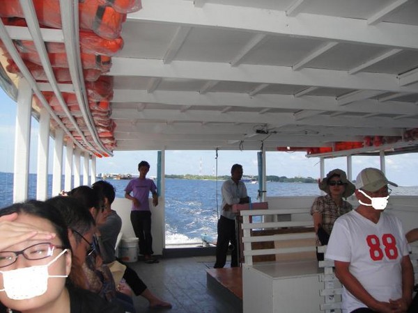 MM不好意思,我先给一付口罩带上吧!大爷委屈你一下吧!您不戴口罩,我担心有一天我吃肖像权的官司滴。同来时一样乘船去马累市区!