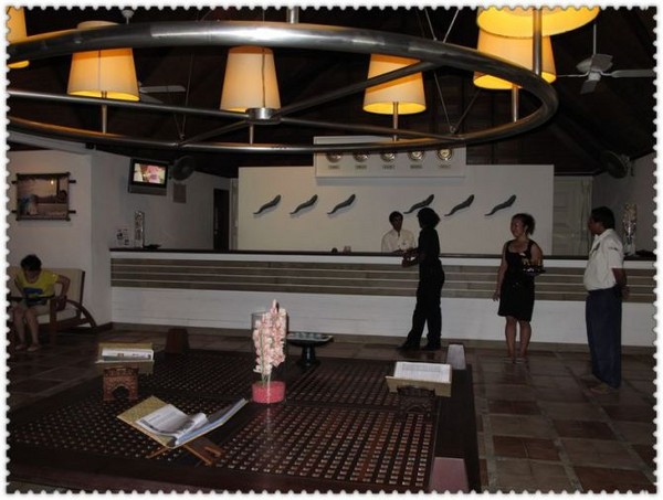 度假村前台有会说中文的GO人员,他们来自不同的国家,每个人多才多艺。有台湾的MM,有韩国的帅哥,有中国大连的靓妹,有法国GG。在前台可以办理消费卡,安全消费,方便结账。GO会按事先给你的号码牌上的数字 带领大家到各自的房间休息,或自由活动。要注意安全!