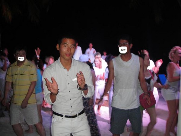 前面这个就是韩国小帅哥,哈哈!我的摄影技术太差啦,把他照的都不像他啦,大家就将就看吧!其实,是我没把相机调整到动态按键的原因。说句心里话,这些GG和MM为了来岛上度假的人们能快乐幸福的度假,她们真的好辛苦,我真诚的在此说声谢谢你们!你们辛苦啦!