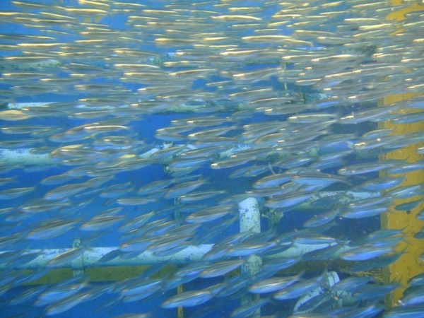鱼儿泳姿十分优美,很讲团队精神,动作一致协调。它们似乎为迎接我们的到来,用它们的仪仗队来欢迎我们。哈哈!一条鱼转弯 所有的鱼一同转弯。