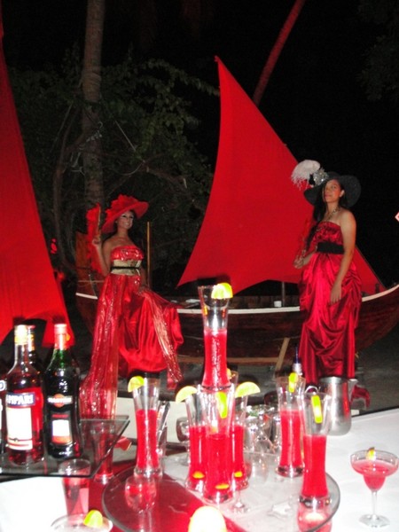 走出水屋去参加今晚的红色主题晚宴,前面的水屋是我的邻居,他们是一对日本或许是韩国小夫妻也或许是情人来此度假滴。哈哈!这是人家滴私事,不做过多猜疑性的讲解!