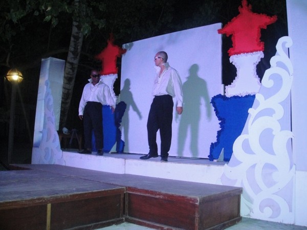 22:30时分,舞台剧。同样都是由GO哥哥来出演的,内容都是小喜剧,我真的佩服他们。岛上的GO来自不同的国家和地区,中文、日文、韩语、马来语、泰国语等都不是问题,英语自然不在话下。
