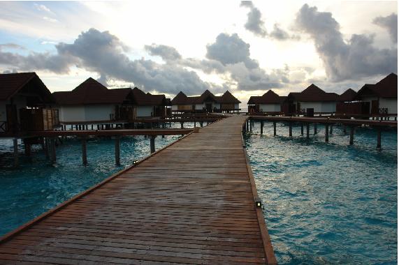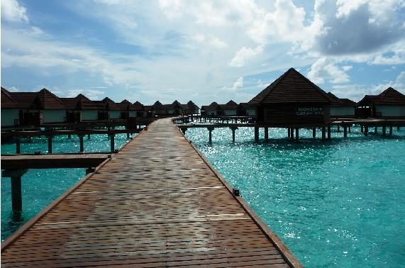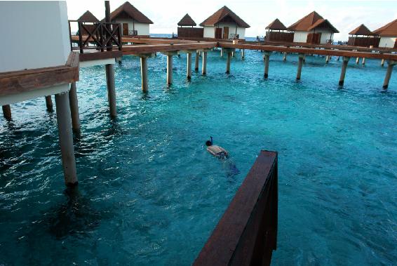 沙屋离餐厅很近啊,出餐厅走了没几步就到了,水屋挺远的,走了好几分钟才到,不过沿途的风景也着实让我们驻足了一下,一想到接下来的4晚5天都能在这里,很是愉悦啊!~