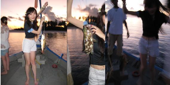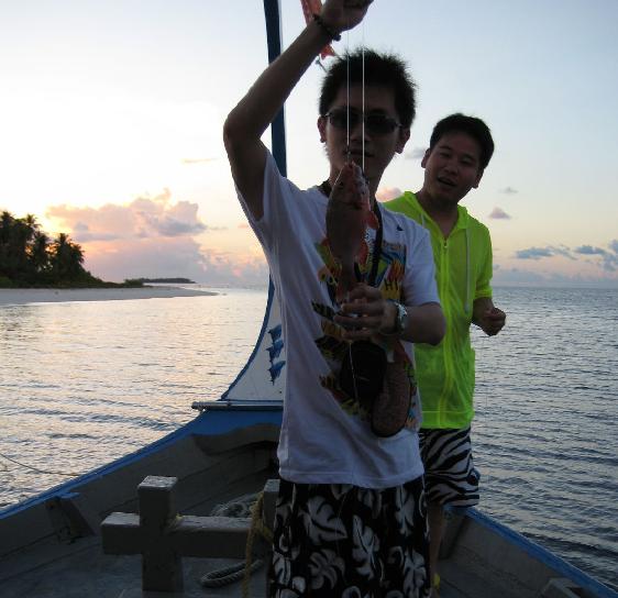 张家相公很郁闷,因为媳妇身体不舒服在房间休息,他一个人跟我们另外两对一起出来绕岛,在订玩的项目的时候也挺郁闷,想玩吧,又怕媳妇不高兴。。但最终受不住饼干的忽悠,他还是订了和我们一起第二天黄昏海钓。魏家两口子订的是晨钓。