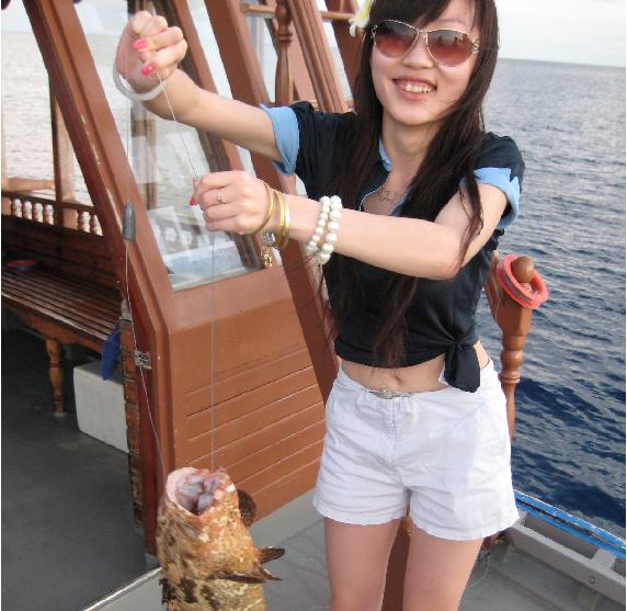 多会节约成本啊,我们出了钱来钓鱼,钓上的鱼给酒店做菜,我们又出钱又出力的,他们后厨捡现成的!~