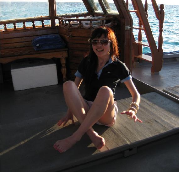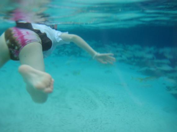 就这样坚持着玩了一会儿,还是受不了了,RUDY就把我们带出海面,我跟他说我耳朵太疼了,就不继续了,让他带着饼干潜深一点。不能因为我影响到相公,呵呵