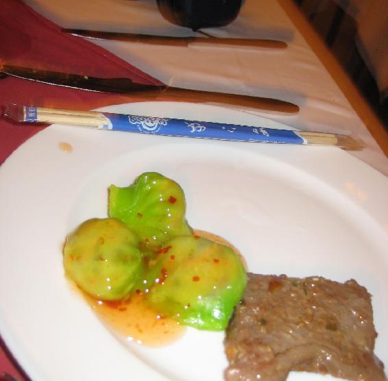 饼干还是很英勇的尝试了,但他把这个抬过来后没拿筷子,等我看见的时候他用着刀叉很艰难的在和米饭做斗争!~旁边有个小黑一直微笑的看着他,等我拿了筷子给饼干,他顺利夹起一块送入口中后,站旁边那小黑也松了口气,跟他说这下容易多了。。。哈哈,我笑。。