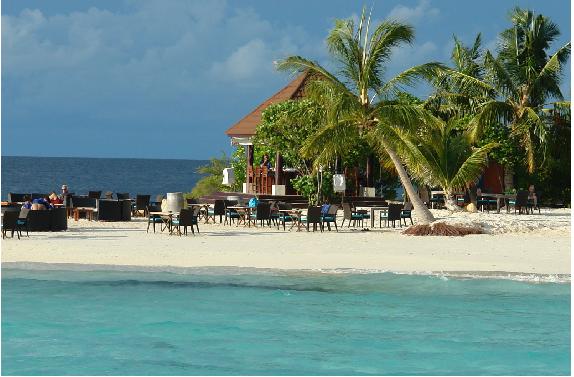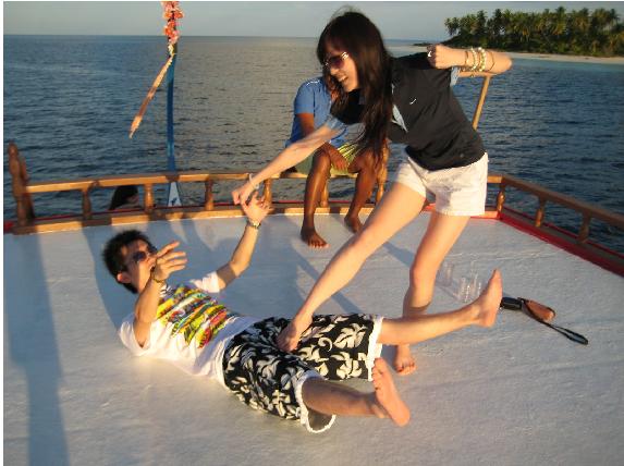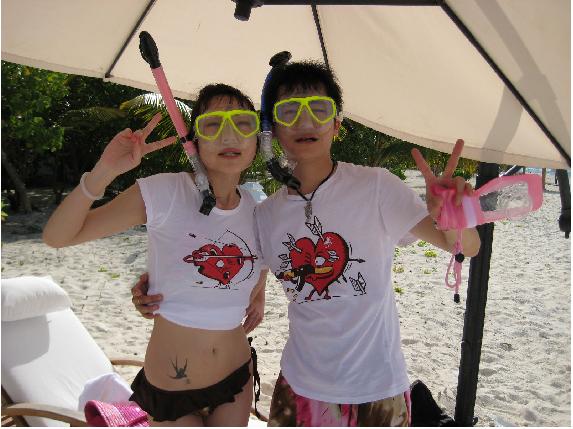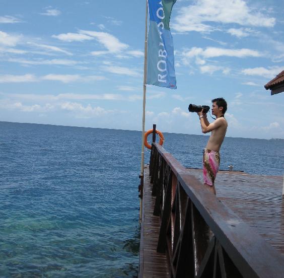 到了GAN机场后,马上就看到R岛的小黑了,蓝T恤,白字大大的写了:Robinson,这衣服,好认!~ 小黑让大家先去外面园子里休息一下,等他查查人全齐了,行李也都齐了,就去座快艇了。