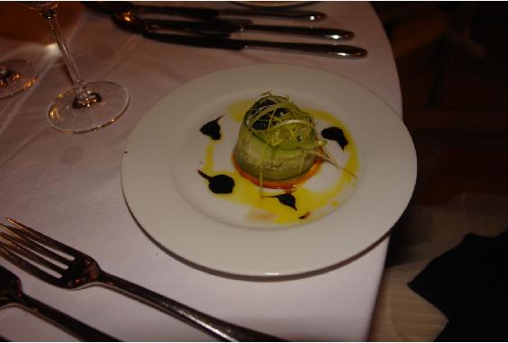 头盘:黄瓜包蟹肉。。。好吧,我是很没有诗意的人,菜名只能英文直译了