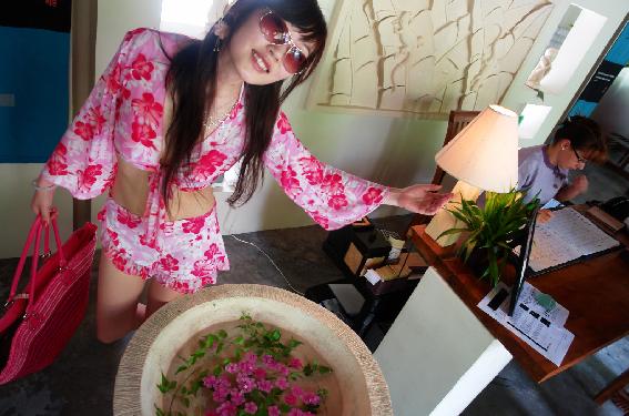 本来想马上换上比基尼的,结果行李还没送到,没办法,水屋是最不顺路的。。。
