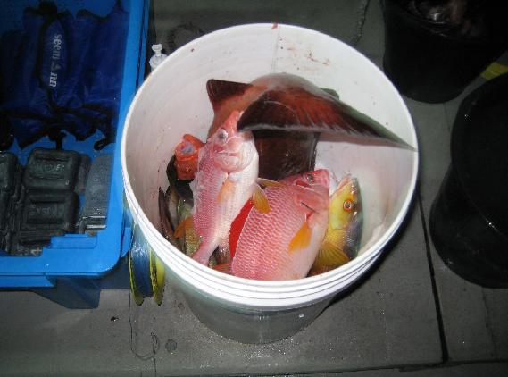 这个桶很长的,全船钓的鱼装了2/3个桶,其中还有很多因为太小而放生的鱼