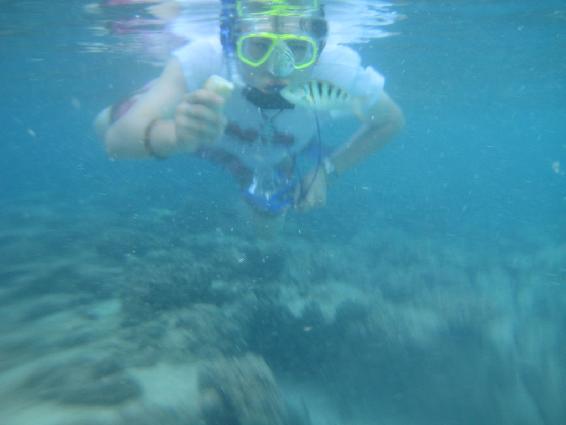 经过昨天深潜的培训,今天我再去浮潜的时候就容易得多了。。。。