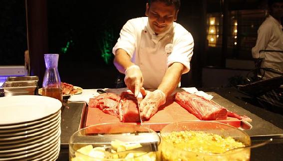 当晚的餐厅主题应该是东南亚。。但中国的餐点还是占了很大一部份