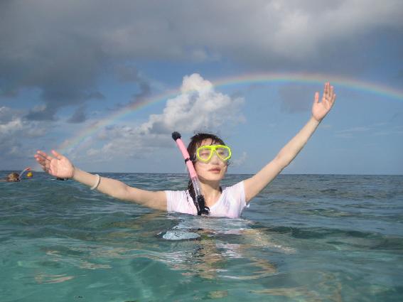 不一会儿,不下雨了!~我们就又高高兴兴的去浮潜!~