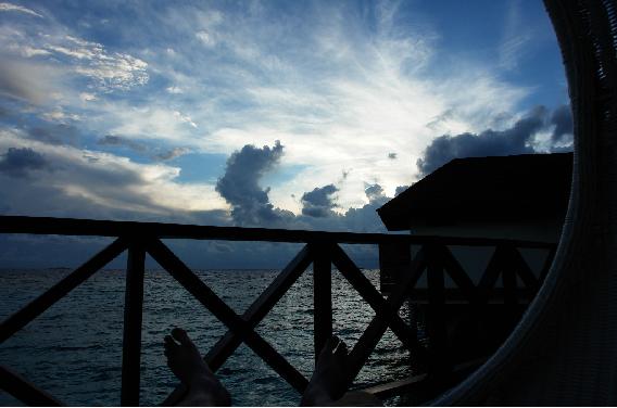 饼干却相当的迫不及待了,很快就把自己的浮潜装备穿好准备下水了,我不想跟他一起去,就懒懒的躺在阳台上已经放好水的按摩浴缸里玩泡泡按摩。。。